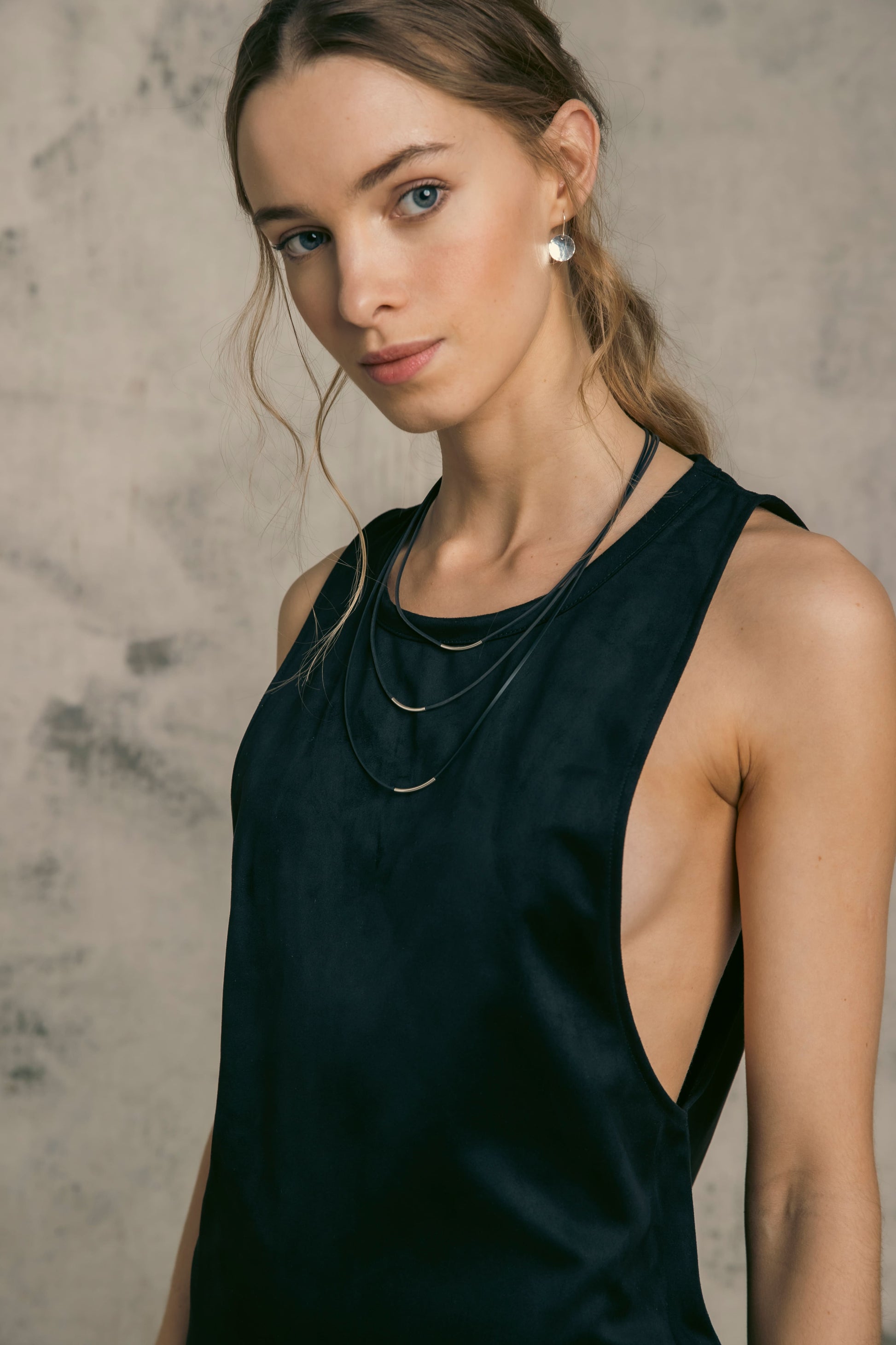 This ‘suede’ ‘side boob’ dress made from recycled plastic bottles is a natural and elegant model that hangs beautifully. Wear this dress in all innocence to meet your lover, for an afternoon in town, or a walk by the sea… And you, what are you going to do with this dress?