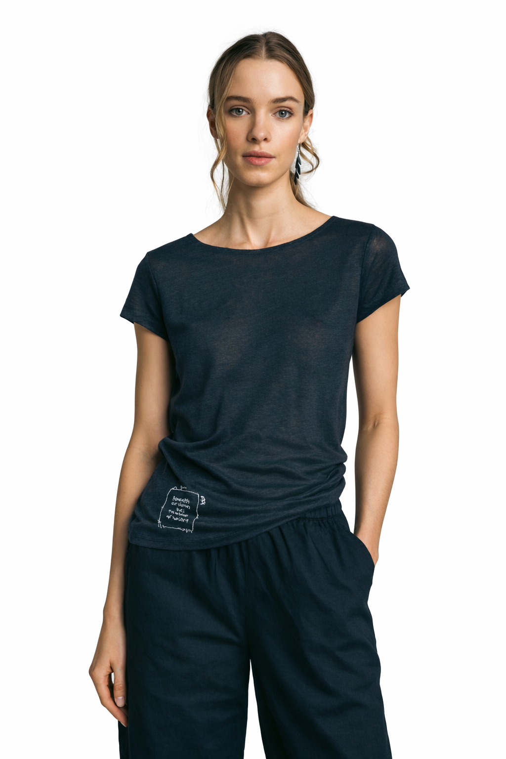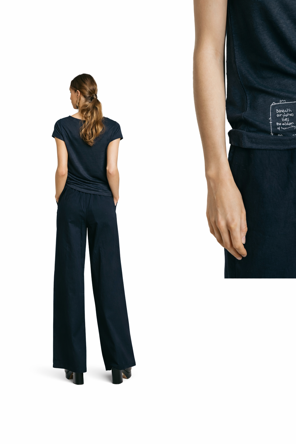 Our linen comes from Portuguese-grown plants, woven close to where it’s crafted—reducing transport, preserving quality, and honoring European savoir-faire. Labels are recycled, hang tags are seeded paper made in Paris, and every detail reflects quiet, intentional luxury.